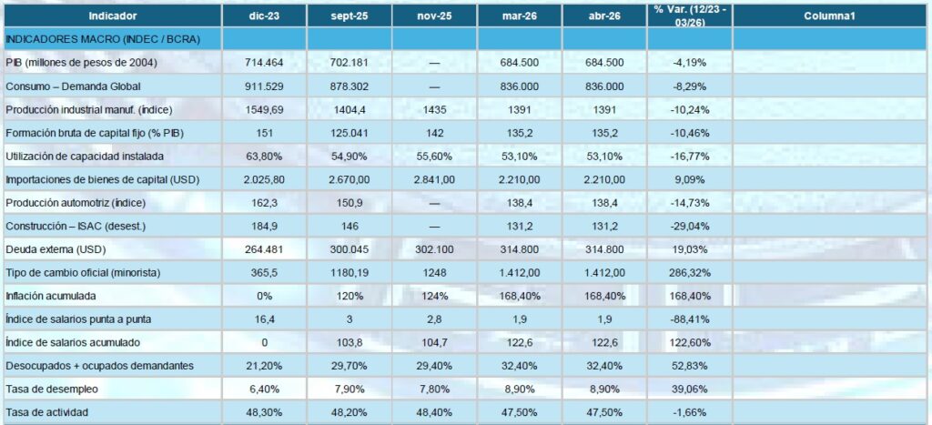 El deterioro del poder adquisitivo, la caída del consumo de bienes básicos y la reducción de la inversión configuran un escenario de contracción económica sostenida, sin señales claras de recuperación en el corto plazo.